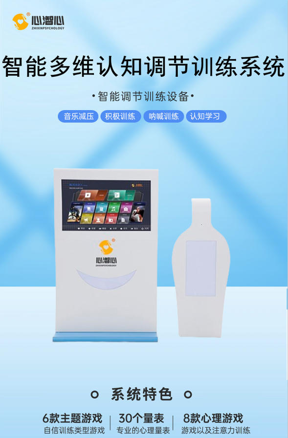 智能多维认知调节训练系统是针对人脑以感知、记忆、思维等形式反映客观事物特征及关系的心理过程,而研发出的智能调节训练设备,通过注意力、理解力、记忆力、想象力的训练,加强训练者的认知能力,养成健康正面的思维习惯。