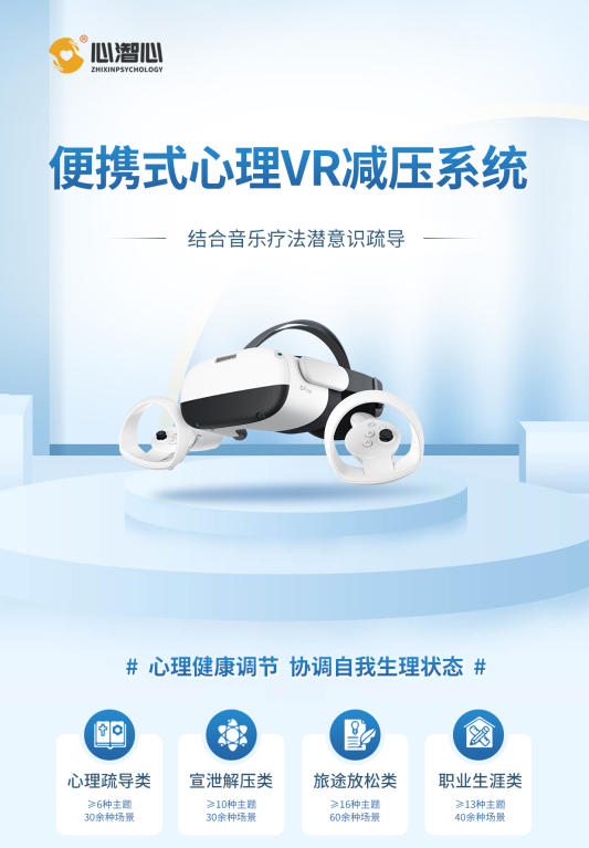便携式心理VR减压系统是通过虚拟现实系统在舒适的环境中指导来访者进行放松训练,结合音乐疗法,潜意识疏导,心理投射等多种心理疏导技巧进行心理健康调节、协调自我生理状态的疏导系统。